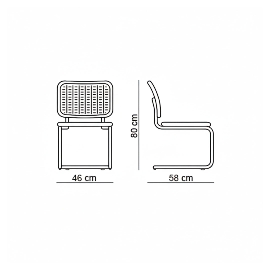 La icónica silla Cesca, diseñada por Marcel Breuer en 1928, representa uno de los hitos más importantes del diseño modernista. Su estructura de acero tubular cromado, combinada con el asiento y respaldo de rejilla de paja de Viena tejida a mano sobre un marco de madera de haya, ofrece una estética que equilibra la calidez tradicional con la vanguardia industrial.