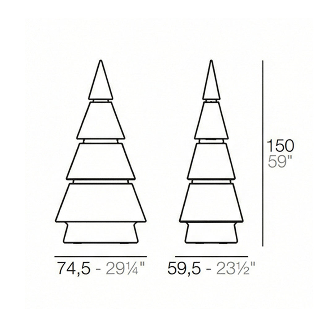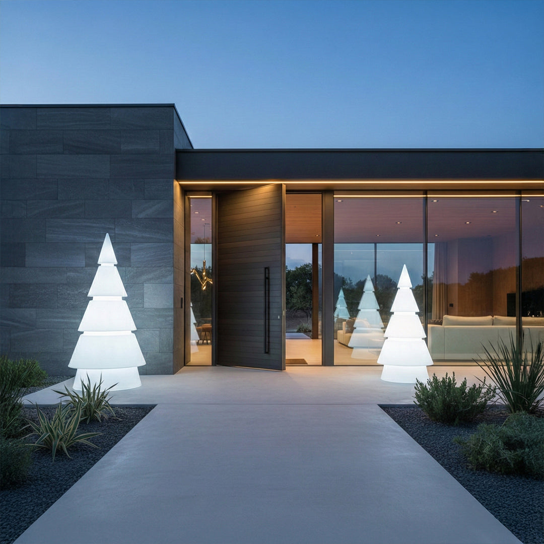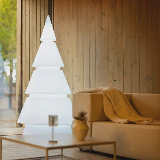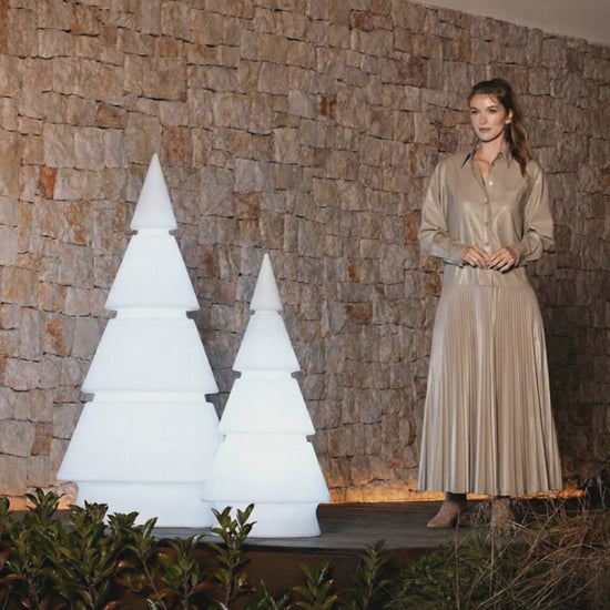 Fabricada en polietileno rotomoldeado de alta resistencia, la pieza mantiene una estructura limpia y arquitectónica que juega con vacíos y volúmenes para crear un efecto lumínico envolvente. Cuando se ilumina, la luz interna se expande entre las ramas estilizadas, produciendo un brillo suave y atmosférico que eleva cualquier ambiente, desde terrazas residenciales de lujo hasta lobbies de hotel, restaurantes de diseño o proyectos contract donde la iluminación debe tener una presencia conceptual y emocional.