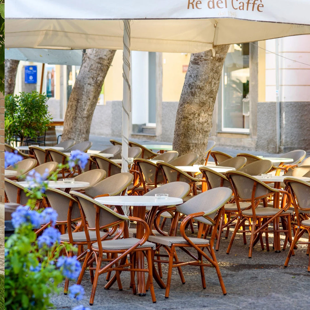 La Poltrona Giò de Antiga es una silla con brazos diseñada específicamente para uso exterior y espacios contract, donde la resistencia, la comodidad y la durabilidad son esenciales. Su diseño equilibrado y atemporal la convierte en una solución ideal para restaurantes, cafeterías, terrazas, hoteles y proyectos de hospitalidad.