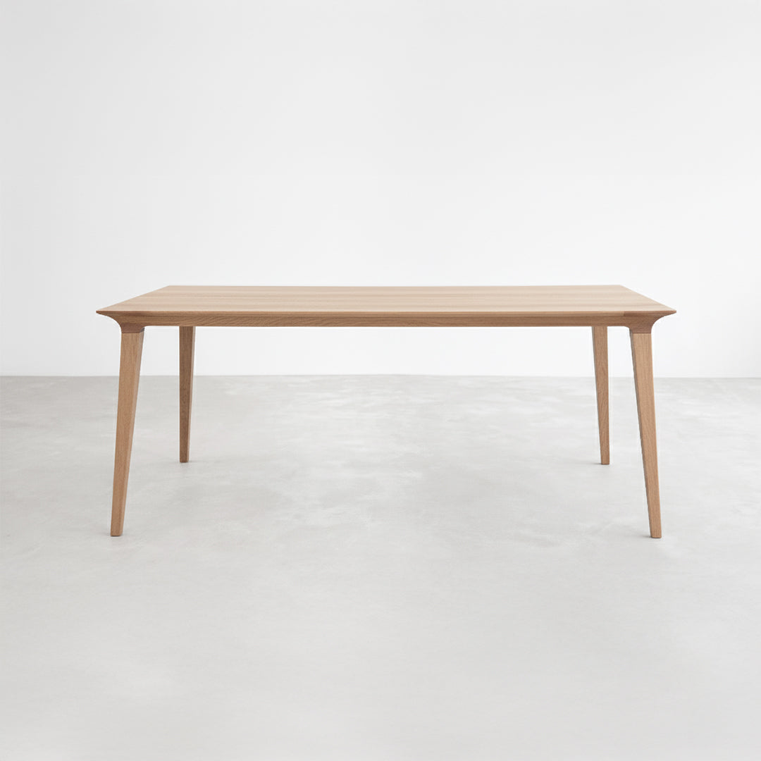 La mesa Lau de dimensiones 180 × 90 cm en roble natural es una pieza que combina sofisticación, calidez y presencia ligera, diseñada para espacios exigentes y elegantes, tanto residenciales como contract de alto nivel.