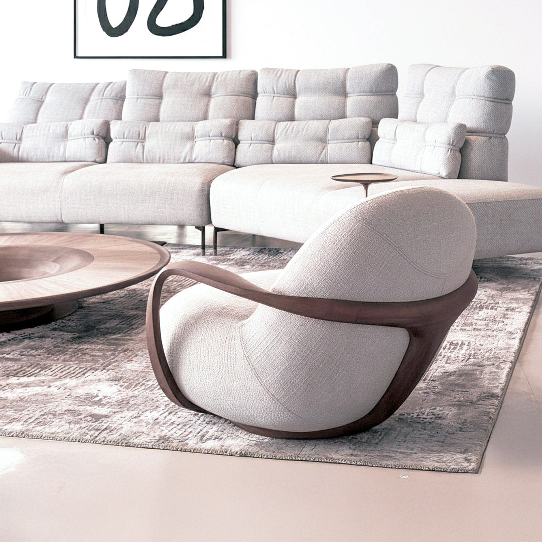 Cómodo de mirar y sentarse, generoso en términos de ergonomía y tacto. Las líneas convergentes invitan al ojo a caminar por tangentes.