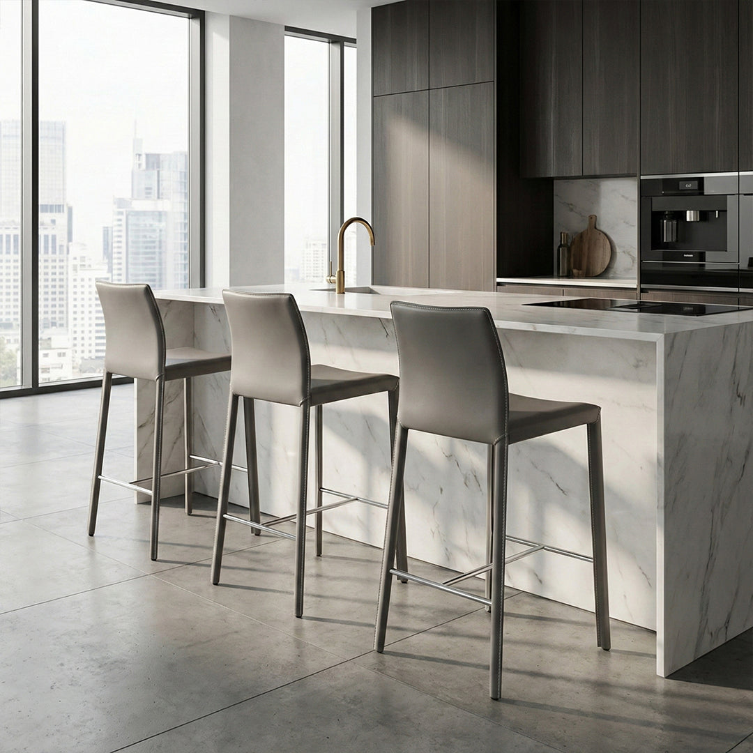 Con un respaldo envolvente y líneas suaves, este taburete se adapta a una variedad de espacios, desde cocinas modernas hasta bares y zonas de reunión exclusivas.