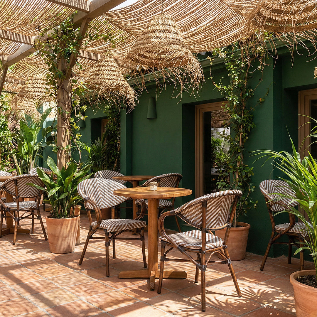 Restaurantes, cafés, terrazas cubiertas, hoteles, bares y proyectos contract que requieran mobiliario funcional, elegante y resistente al uso continuo.