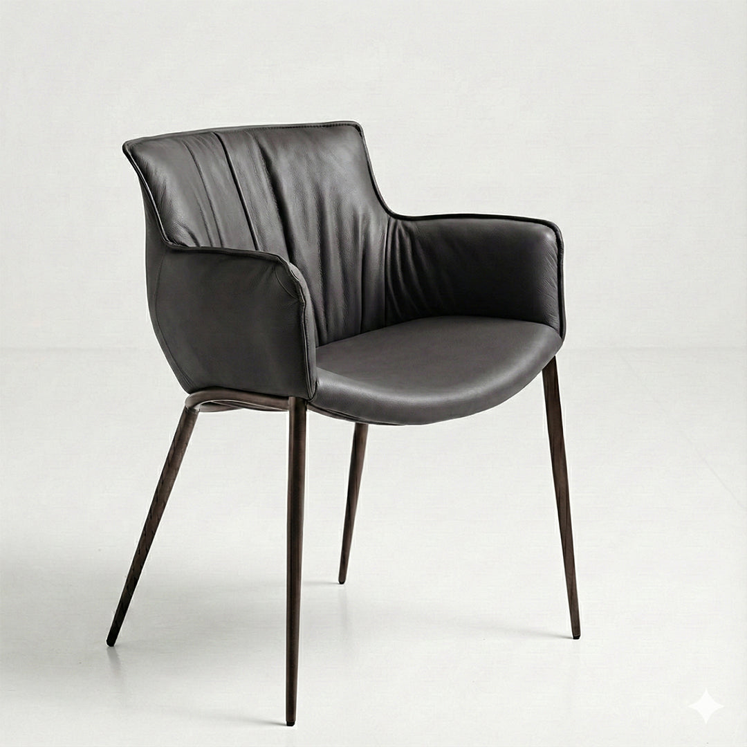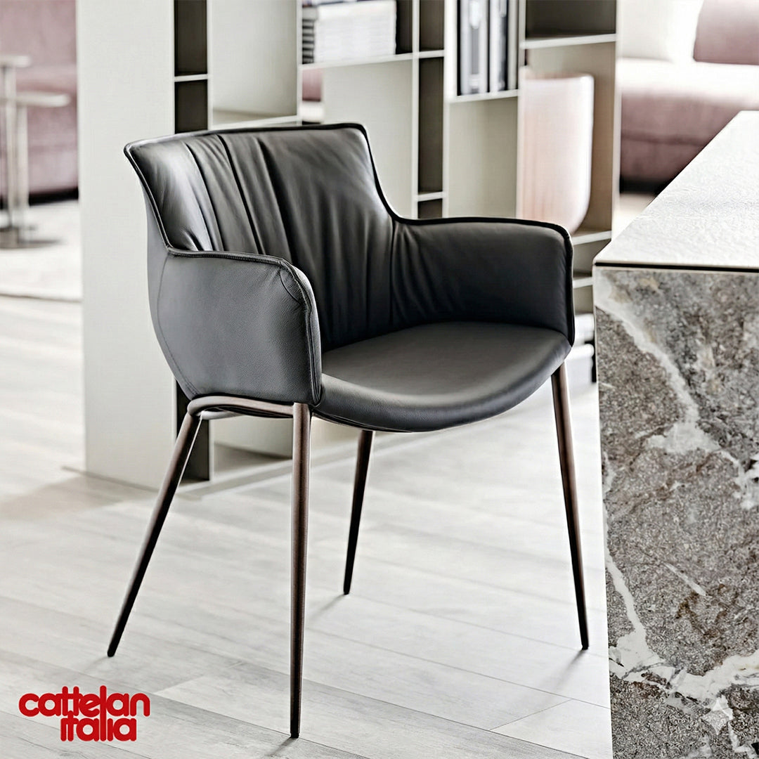 La familia Rhonda, con su forma redondeada, tiene una elegancia natural que la hace adecuada para amueblar un comedor de diseño confortable y acogedor. Los suaves pliegues que decoran el interior del respaldo crean un contraste con la suave cáscara que envuelve el cuerpo.