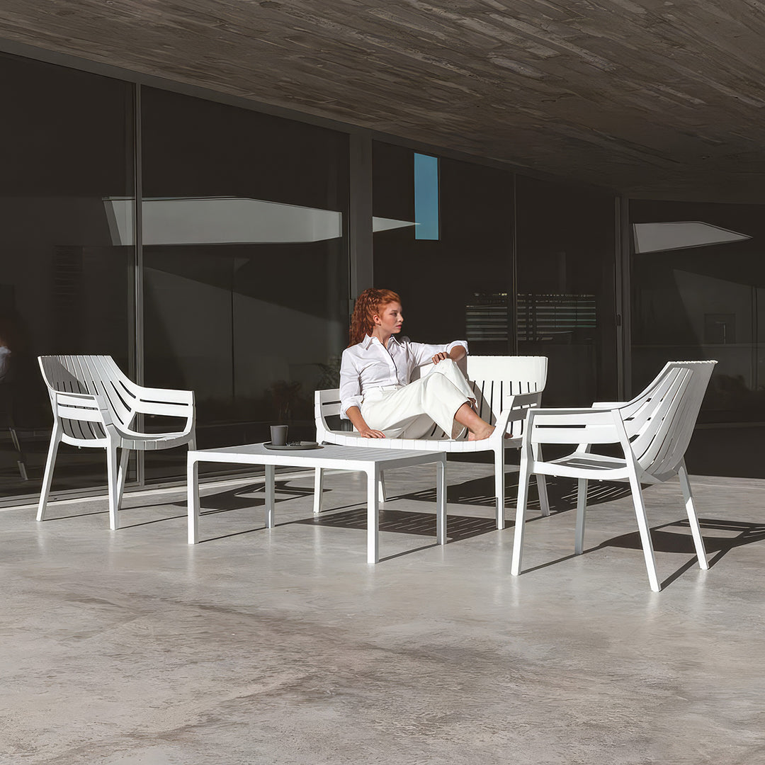 El Sofá Spritz, diseñado por Archirivolto Design, captura la esencia de las tardes de verano con una línea de muebles exteriores que combina simplicidad y funcionalidad. Está inspirado en las vallas blancas de playa y sus delicadas geometrías, aportando frescura y elegancia a espacios exteriores. Está fabricado en polipropileno por inyección, reforzado con fibra de vidrio, es apilable y apto para uso interior y exterior.