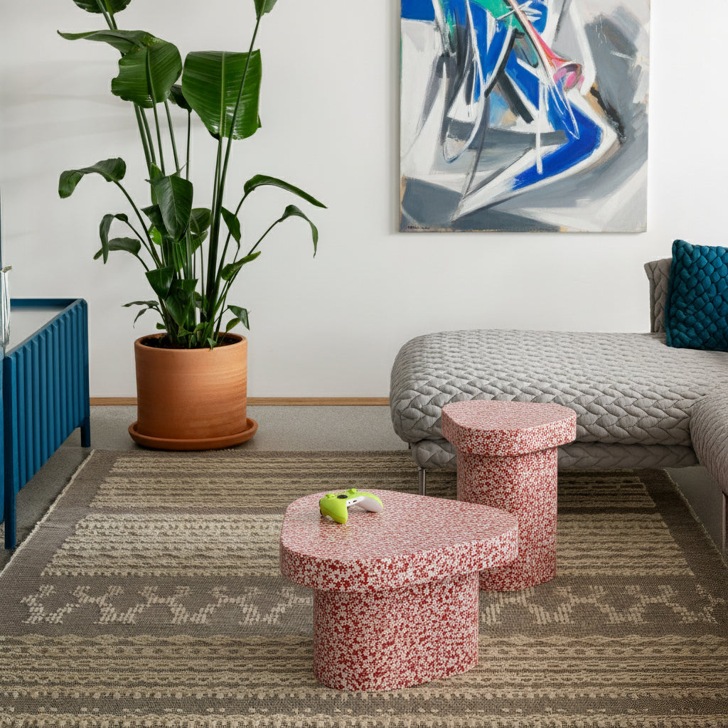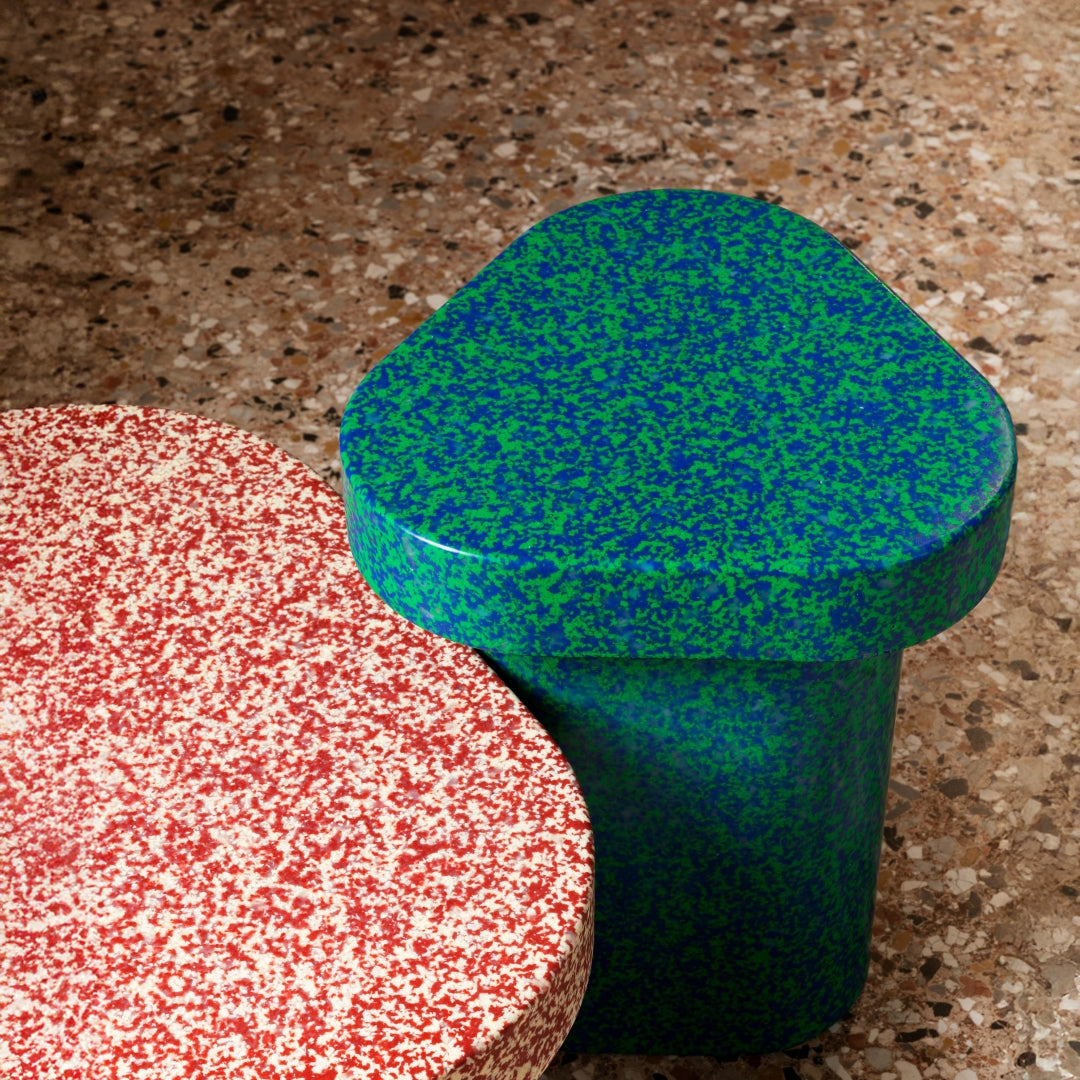 A Superpop le gusta transformar el polietileno en arte, a través del reciclaje y el uso del color. Así se convierte en supersostenible, superligero y supercool, en la compacidad de un diseño extremadamente versátil: mesita, mesilla de noche y taburete. El material reciclado que lo compone se clasifica por tipología antes de ser utilizado y fundido a baja temperatura: esto permite reducir el impacto ambiental además de mantener inalteradas sus características, activando así un proceso circular y ecológico. ¡Simplemente súper!