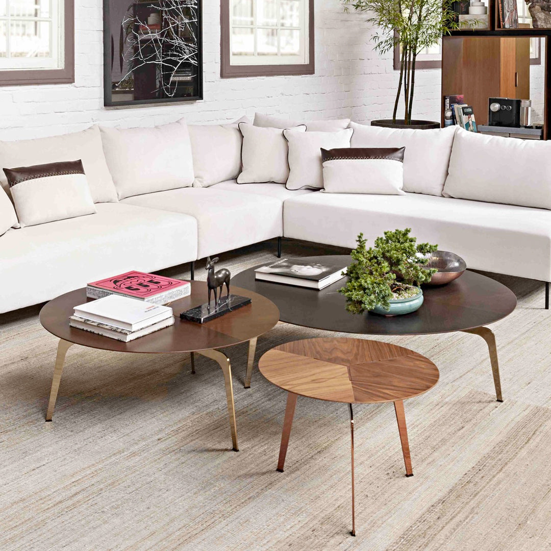 Para que esto funcione de manera fluida, la base tiene solo tres pies, por lo que es posible colocar más mesas, ya que no hay pies en exceso que perturben la composición.